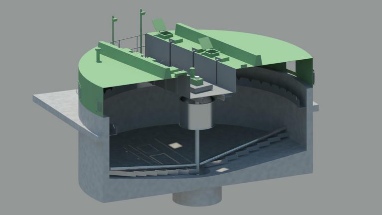 3D model of section through sludge thickener – Courtesy of Mott MacDonald Bentley Ltd