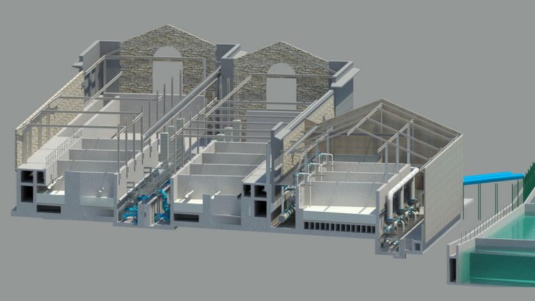 3D model of clarifier building internal view – Courtesy of Mott MacDonald Bentley Ltd