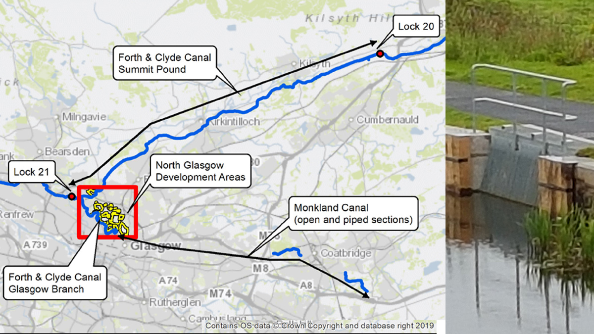 The Forth & Clyde Canal, being the world’s first sea to sea navigation which opened in 1790, is 35 miles of navigable waterway, running from Bowling in west Glasgow, to Grangemouth in the east. The summit pound runs from Maryhill Lock 21 in north Glasgow, to Wynford Lock 20 to the east. In total the summit pound is around 30km long and approximately 15m wide, giving it a large area of around 450,000m2. There is little variation in water level along its length and it is this hydraulic characteristic that makes the canal a perfect receptacle for surface water drainage as it acts like a storage reservoir.