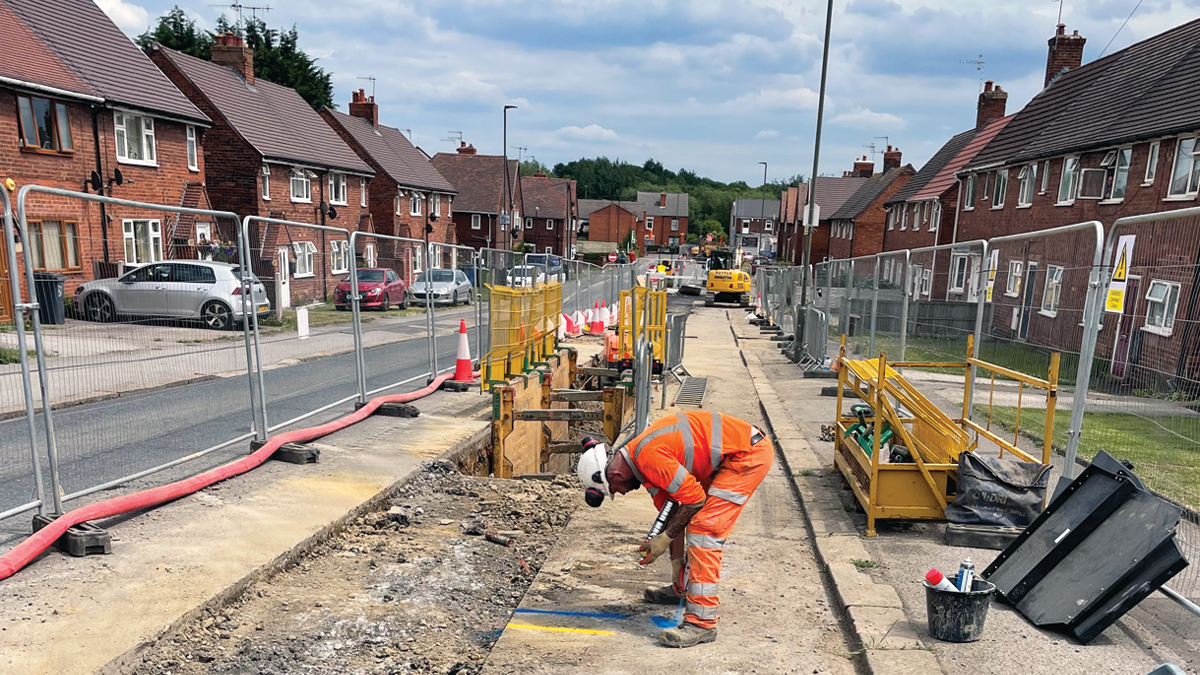 Construction works on the remainder of the project continued in March 2022. A temporary one-way system was implemented to provide a safe working area to install the remainder of the pipeline with open cut works commencing on 14 March. The open cut works progressed steadily with over 100 services safely crossed. The later spring and summer months provided excellent conditions for online sewer relay with drought-like conditions, culminating in hosepipe bans for the majority of the UK.