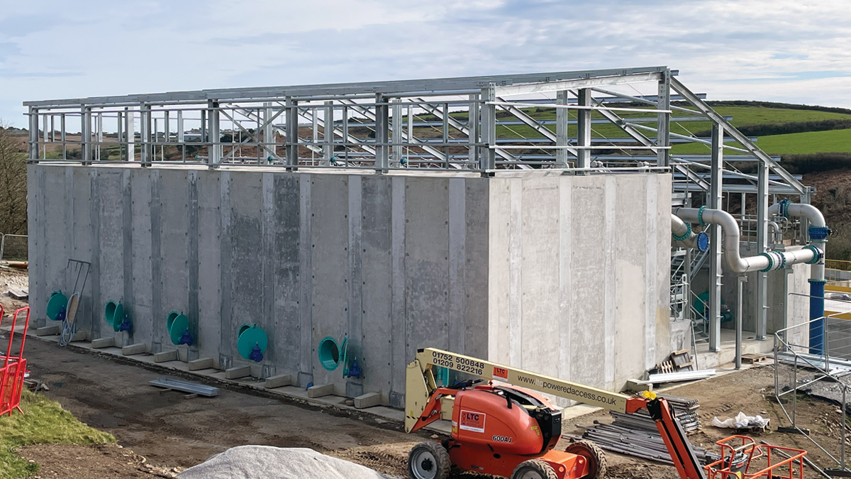 Precast concrete storage tanks were the next structures to be completed, at the same time as the underground pipework. All the structural elements have been linked together with process pipework and an extensive underground cabling network links them electrically back to the main South West Water control room.