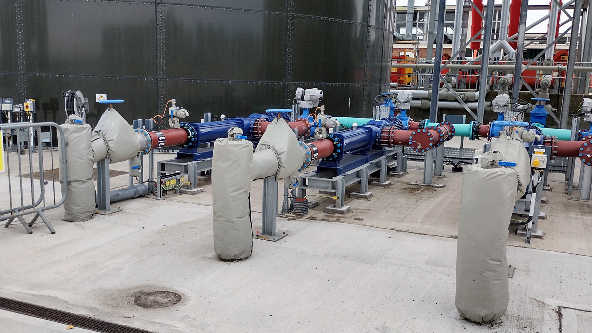 Liquid imports and indigenous thickened surplus activated sludge and screened primary sludges are blended in existing sludge retention tanks on site. New sludge transfer pumps from P&M Pumps Ltd were installed to feed the new pre-thermal hydrolysis dewatering plant.