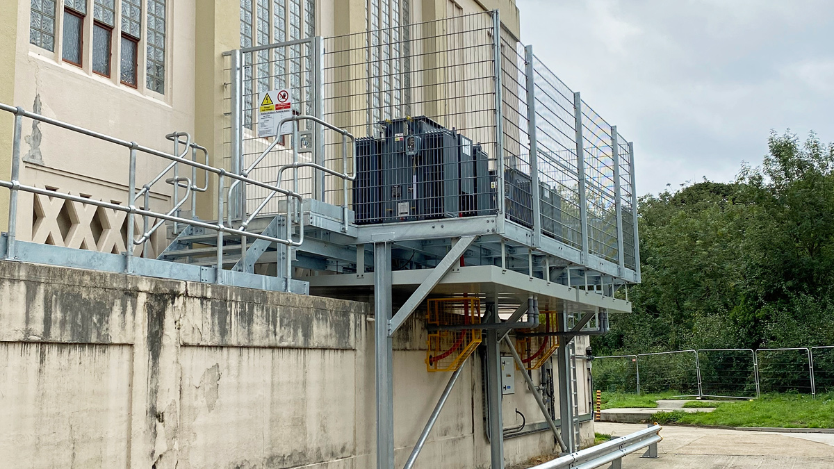 A degree of brainstorming resulted in a novel approach of fitting traditional oil filled transformers outside to the rear of the pumping station on an elevated platform behind the main structure, hence having minimal visual and noise impact whilst gaining the advantage of natural cooling and better efficiency. A fully bunded and alarmed oil catchment system is installed in the event of transformer coolant issues. Additionally, close positioning of the transformers adjacent the internal PDB has resulted in significant reduction of LV feeder cables with significant CAPEX saving.