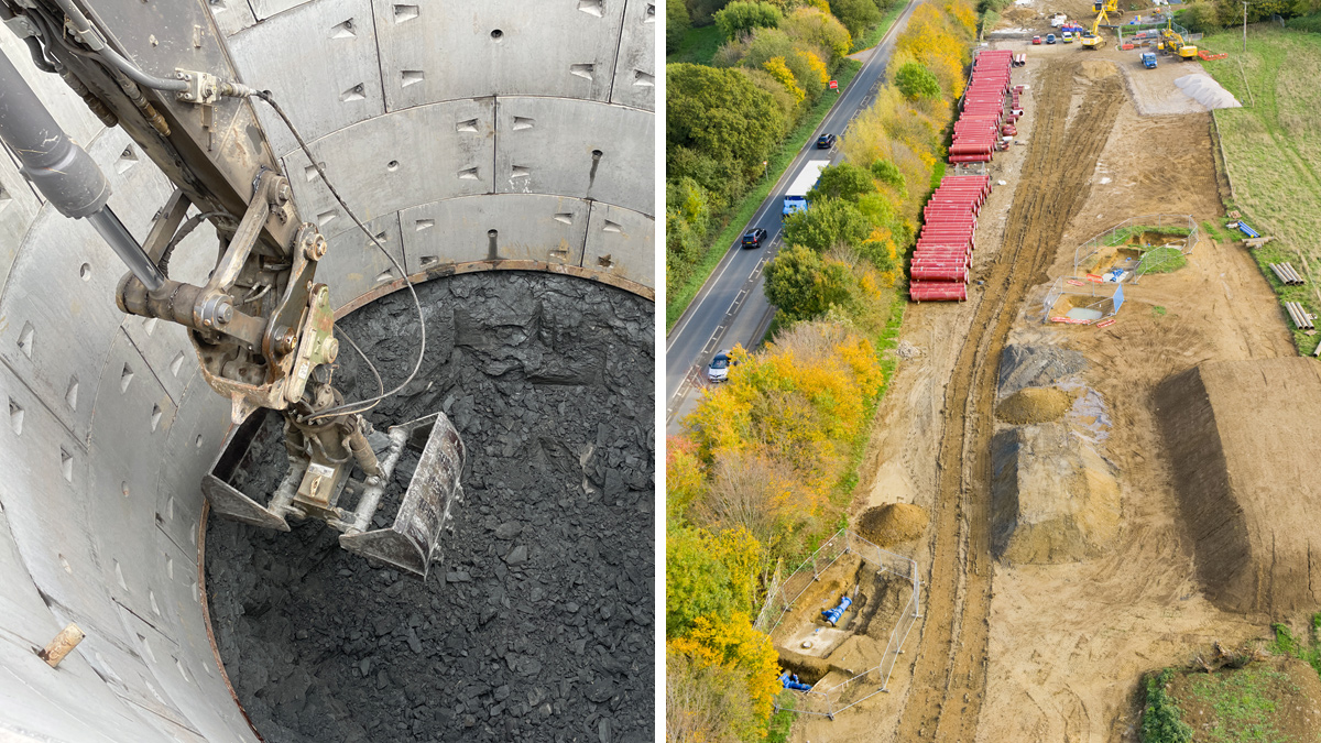 (left) Excavation of shaft and (right) preparations for open cut rising main installation – Courtesy of Galliford Try