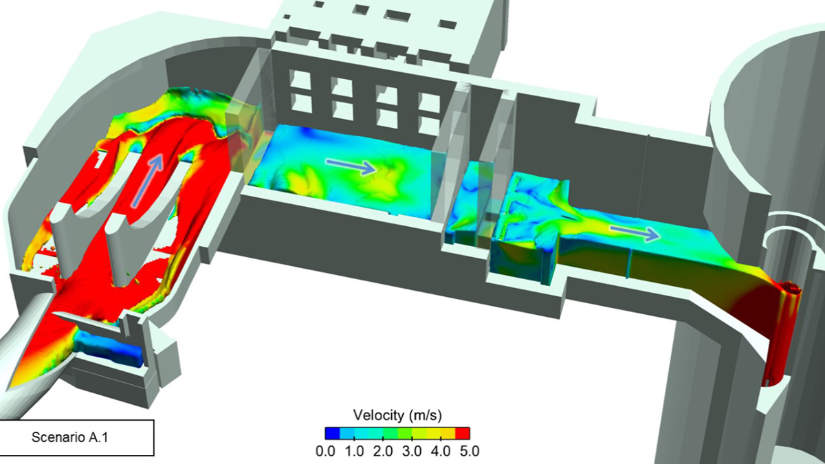For efficiency of programme, physical scale modelling was undertaken at a stage where the design of the hydraulic structures was well advanced. CFD modelling had already been performed, providing confidence to the overall performance of the designs. Key structural members had also been sized and the designs space-proofed for MEICA plant.