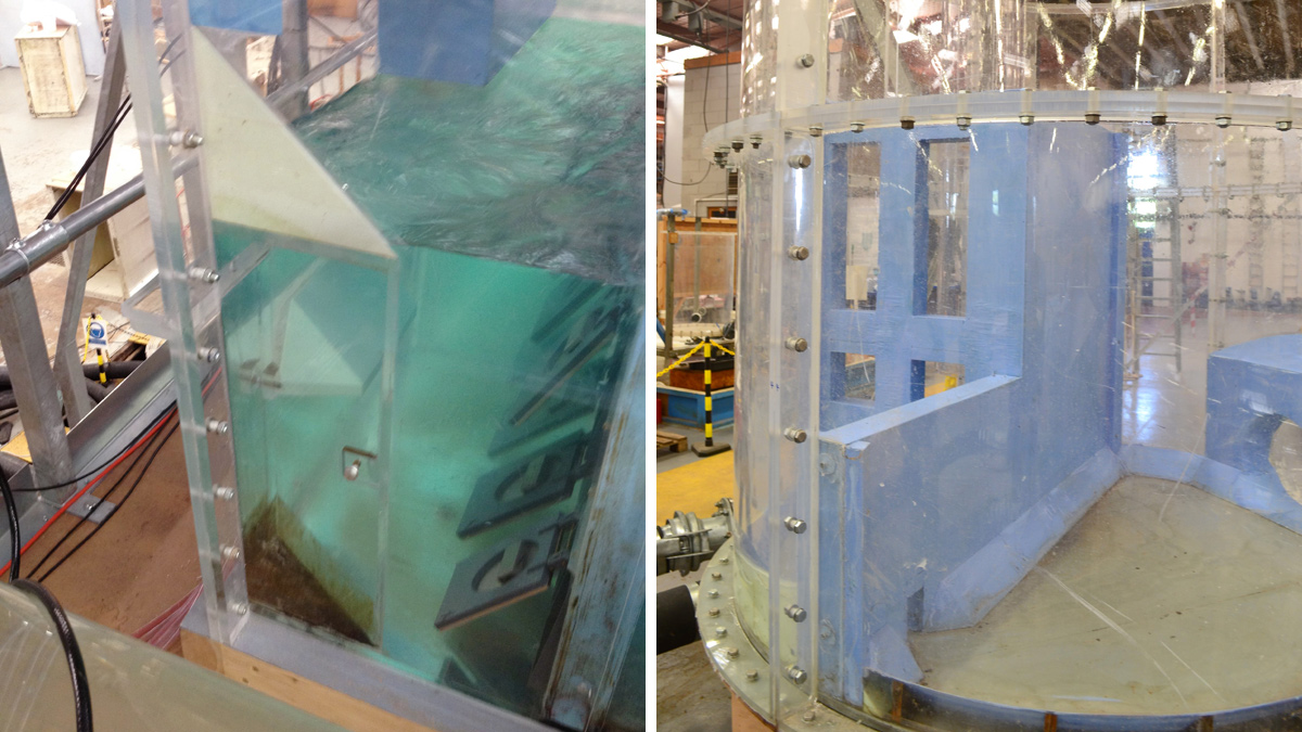 Physical scale hydraulic modelling was used for a comprehensive assessment of the hydraulic performance of the designs across the full range of operating conditions, and to inform and test design improvements.