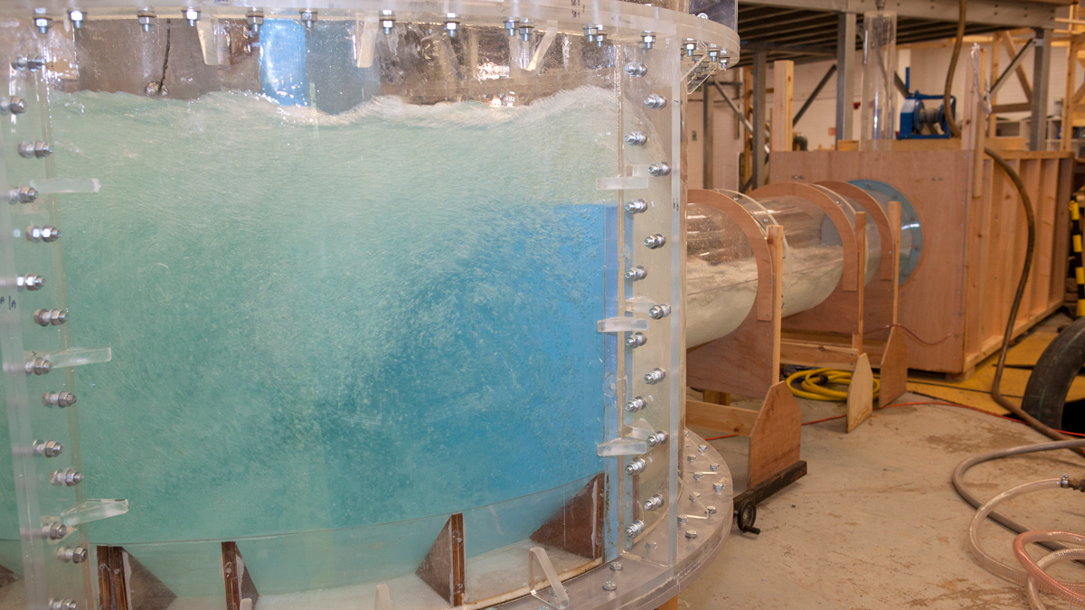 There are also space constraints, leading to constricted designs where complex flow patterns occur, as well as the need for mechanical plant, which is required for the correct operation of the system and needs to be protected from adverse hydrodynamic conditions. Additionally, the large amount of energy generated by the flows, which drop up to 50m inside a vortex drop shaft, needs to be safely dissipated and flows de-aerated before passing on to the tunnel.