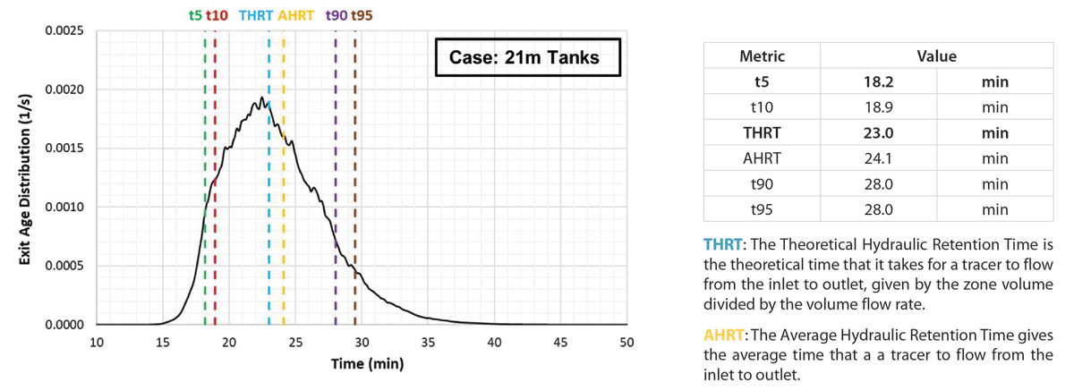 Exit age distribution of tracer measured at the outlet – Courtesy of MMD CFD Team (Spain)