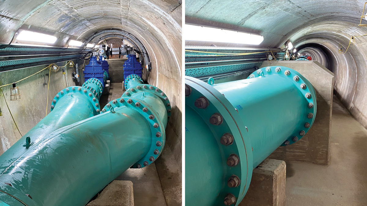 The tunnel cross-section is a 2.4m diameter horseshoe shape. Access to the upstream end of the dry side of the tunnel is necessary to operate, inspect and maintain the new pipework and valve arrangement. The pipework arrangement and diameter needed to consider the ability to remove sections of pipework if required at a later date.