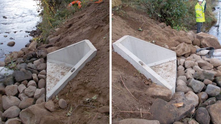- River Tyne pollution protection: The design adopted a precast solution to avoid wet concrete near the watercourse. The precast solution meant that off-site manufacture reduced embodied carbon, providing a more sustainable approach as well as reducing the ecological impacts on site through the construction methods. Flood defence consents were agreed with the Environment Agency, and straw bales placed to prevent silt run off into the river. A sandbag cofferdam was also utlised in the river adjacent to the works, with water pumped out and passed through a fine silt filter before being allowed to discharge back into the river. Strict limitations and controls were placed on plant refuelling arrangements.
