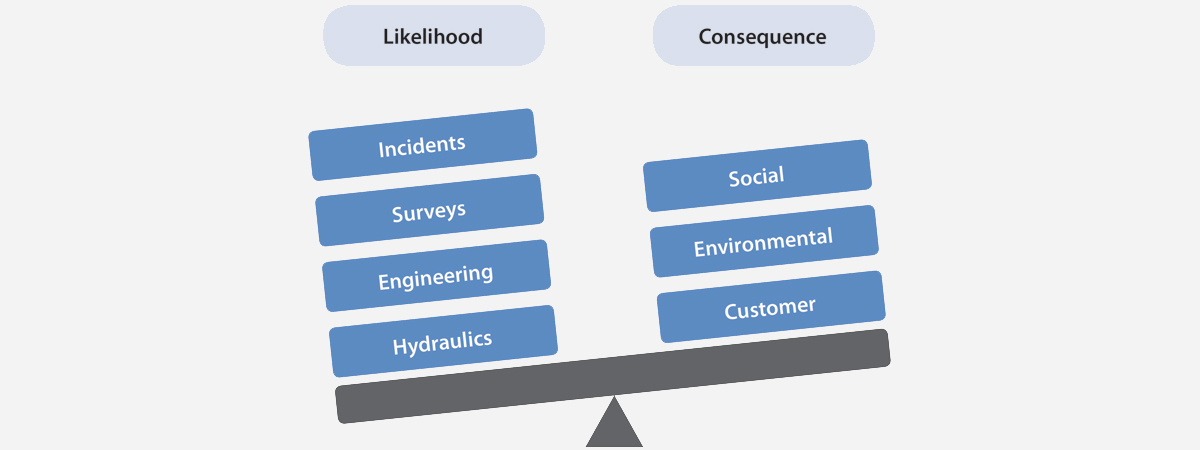 - A flood risk matrix was developed for each site by considering all key contributing risk factors, including the level of risk, probability of flooding from fluvial, tidal or pluvial sources, site accessibility during flood events, environmental harm should the asset fail, and number of people impacted i.e., the population of the catchment served by the particular asset.