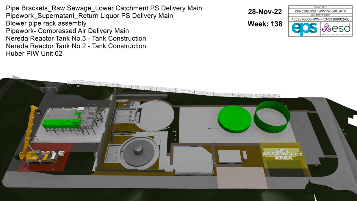 In addition to the experience held within EPS of Nereda® treatment works they also have a strong background in the development of DfMA solutions, which combines in-house advanced digital engineering services with their substantial manufacturing capacity. The Winchburgh project was designed to be a DfMA solution, meaning that the large assemblies were designed to be broken down into modular transportable sections, taking into account the particular site delivery restrictions, that can be reassembled on site.