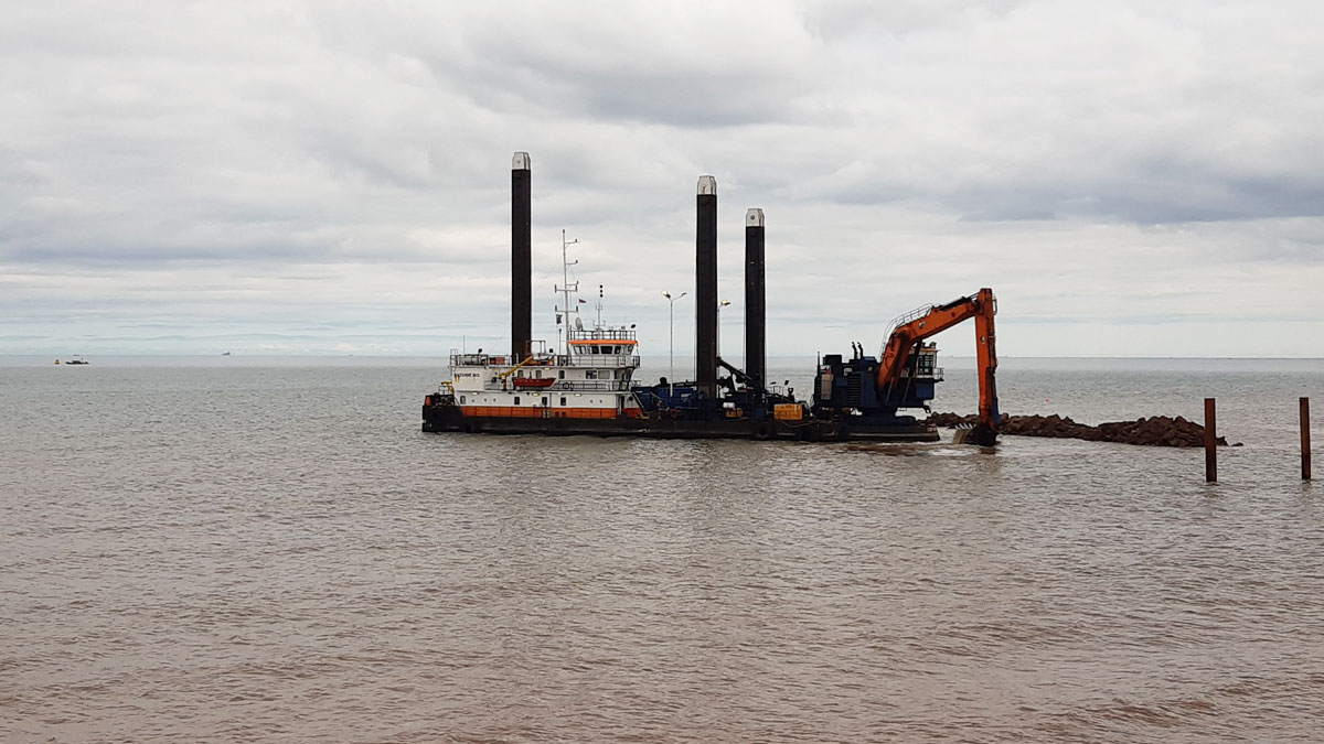 Backhoe dredger during offshore dredging process – Courtesy of Royal HaskoningDHV