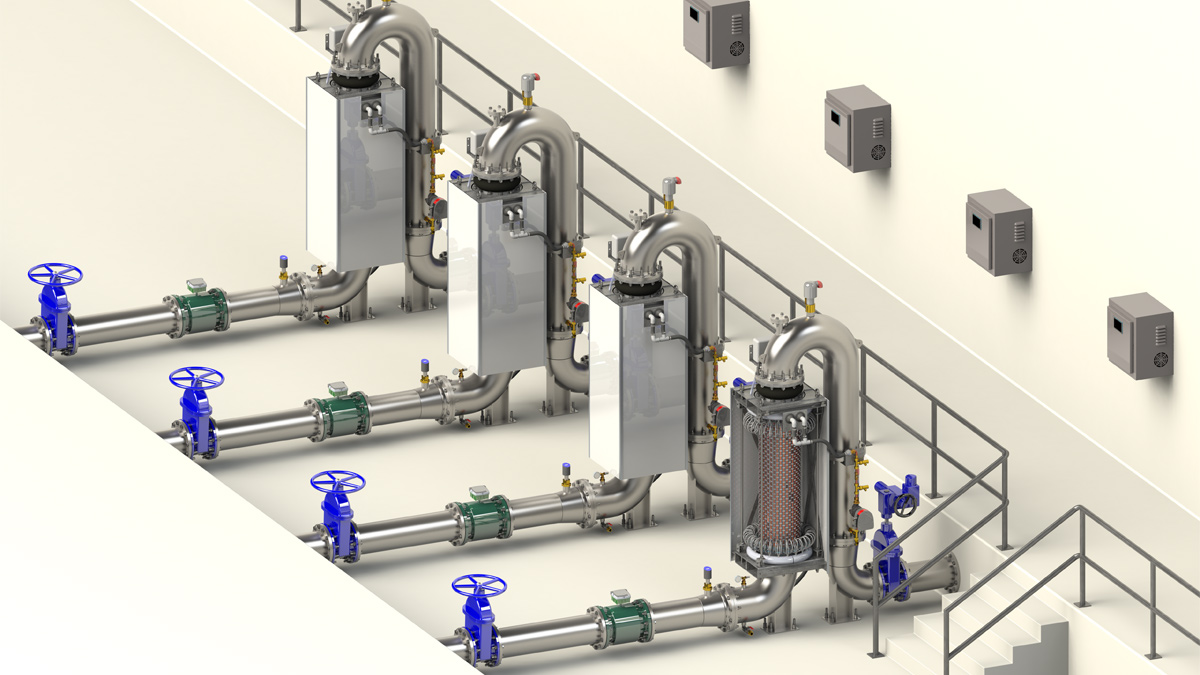 A 3D visualisation of Typhon’s UV LED installed on the outlets of the rapid gravity filters at Cumwhinton WTW – Courtesy of Typhon