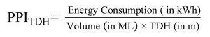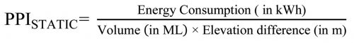 The PPI is just the specific energy normalised for the lift that the pump generates, which is the value H in formula 2. It is identical to the PEI calculation from the Australian study.