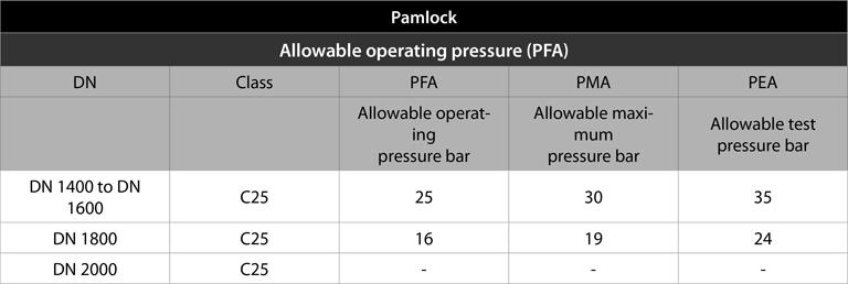 Performances: The ANCHORED PAMLOCK joint combines the advantages of flexible joint pipes with welded joint pipes. The leak tightness of the joint relies on the proven qualities of the push-in STANDARD joint.